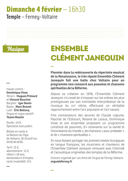 4 février 2018 – CONCERT – Ensemble Clément Janequin