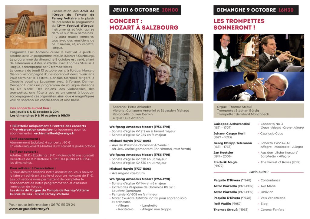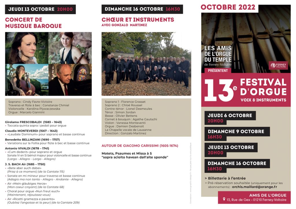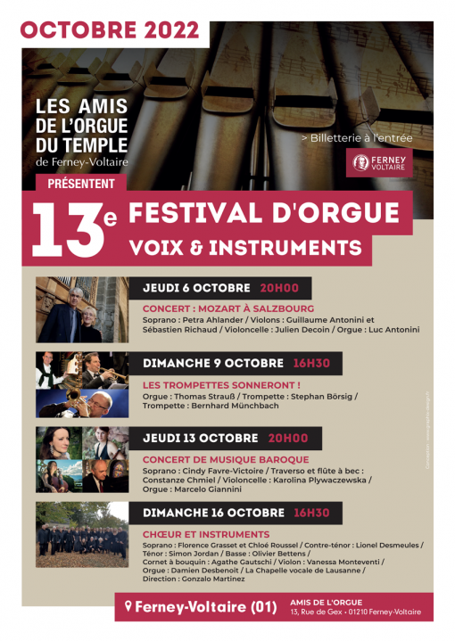 DU 6 AU 16 OCTOBRE 2022 – 13e Festival d’Orgue, Instruments & Voix