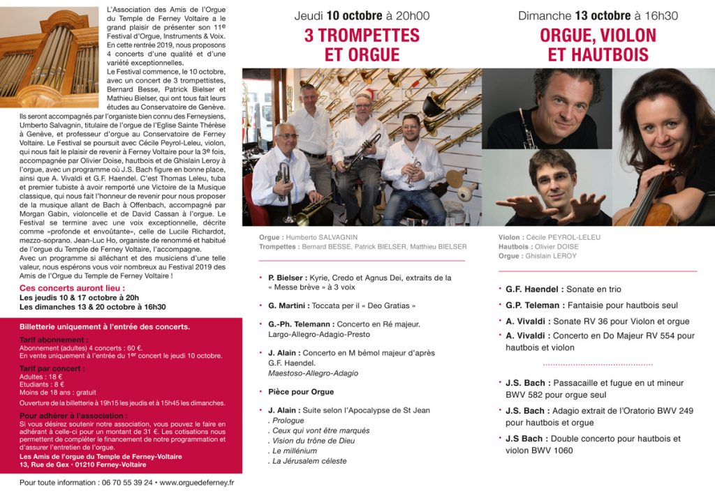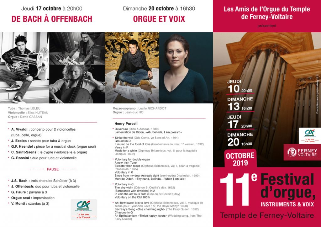 DU 10 AU 20 OCTOBRE 2019 – 11e Festival d’Orgue, Instruments & Voix