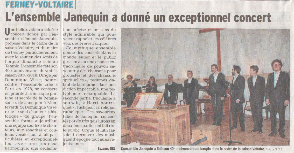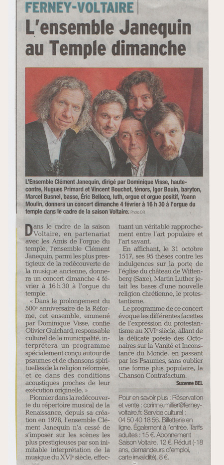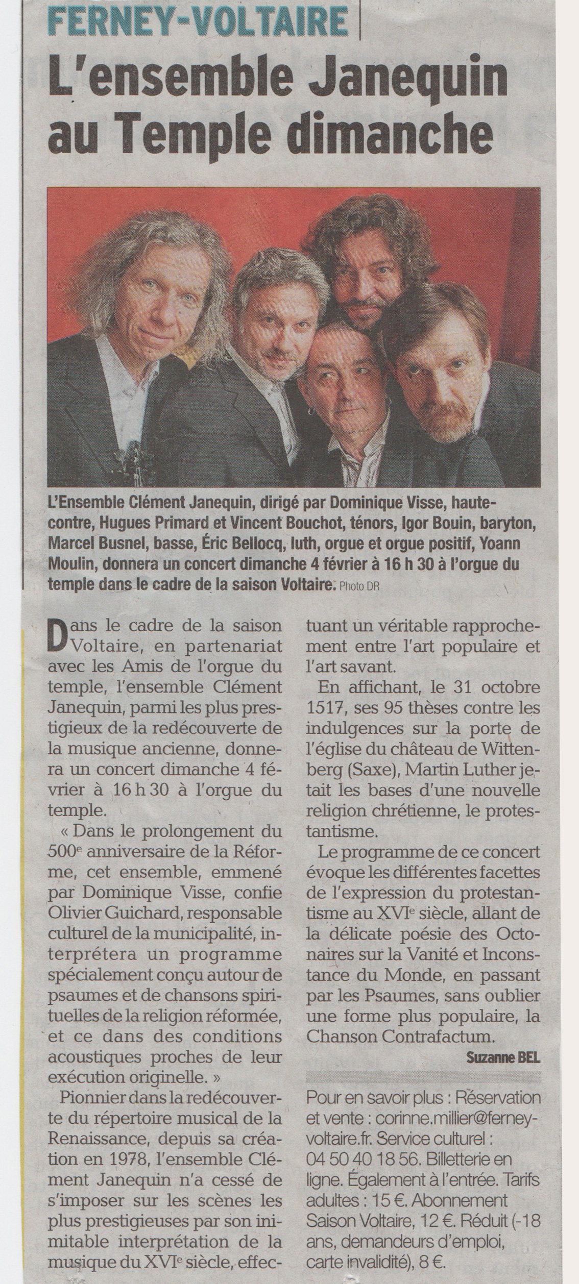 ARTICLES DE PRESSE – 4 février 2018 – CONCERT – Ensemble Clément Janequin