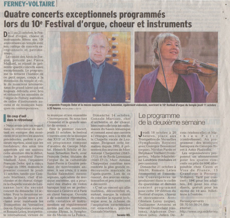 ARTICLES DE PRESSE – 10ème FESTIVAL D’ORGUE – OCTOBRE 2018