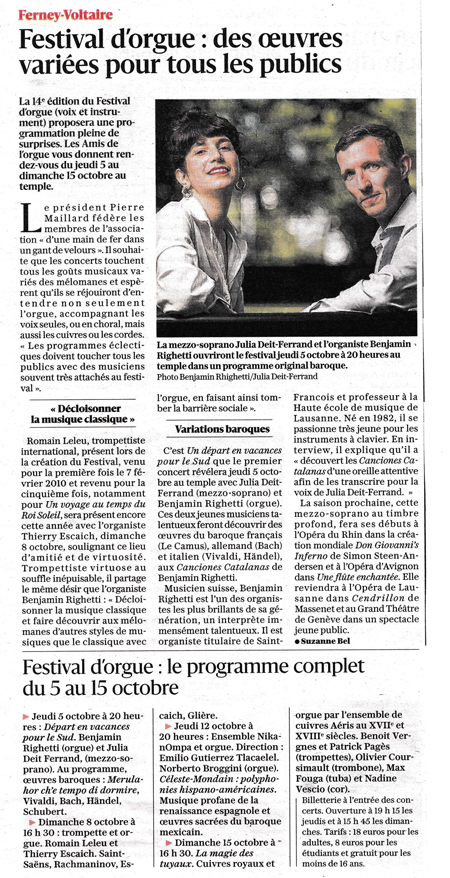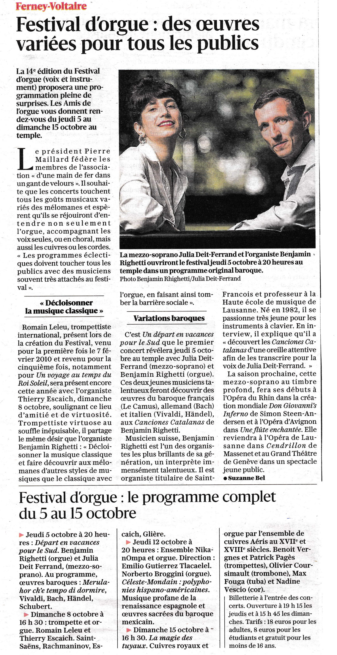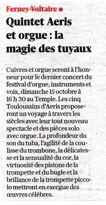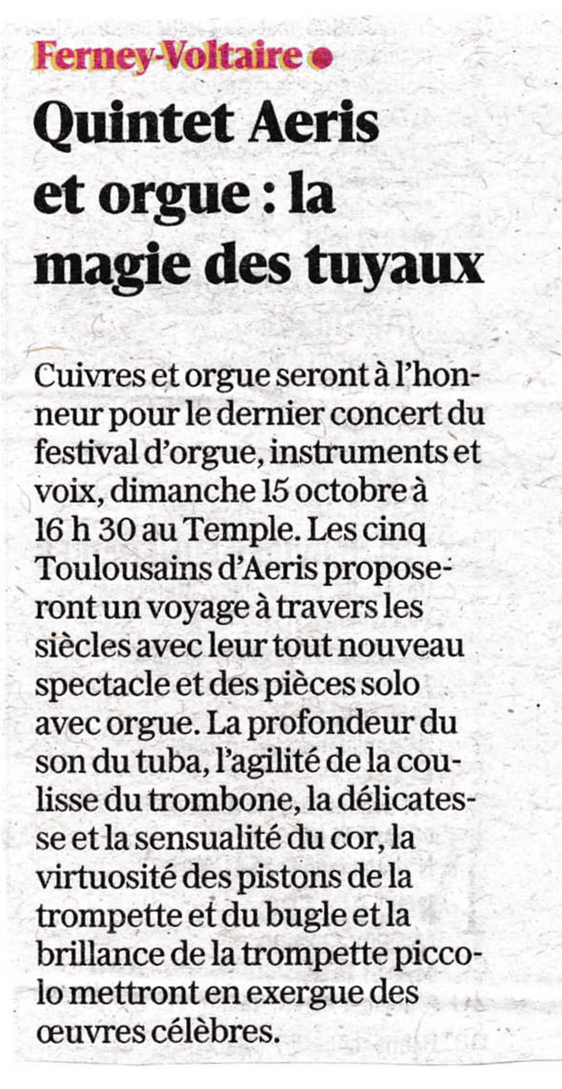 ARTICLES DE PRESSE – 14ème FESTIVAL D’ORGUE – OCTOBRE 2023